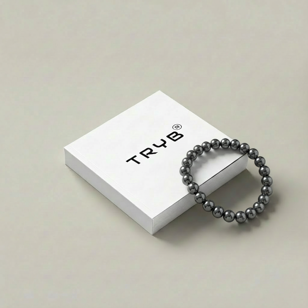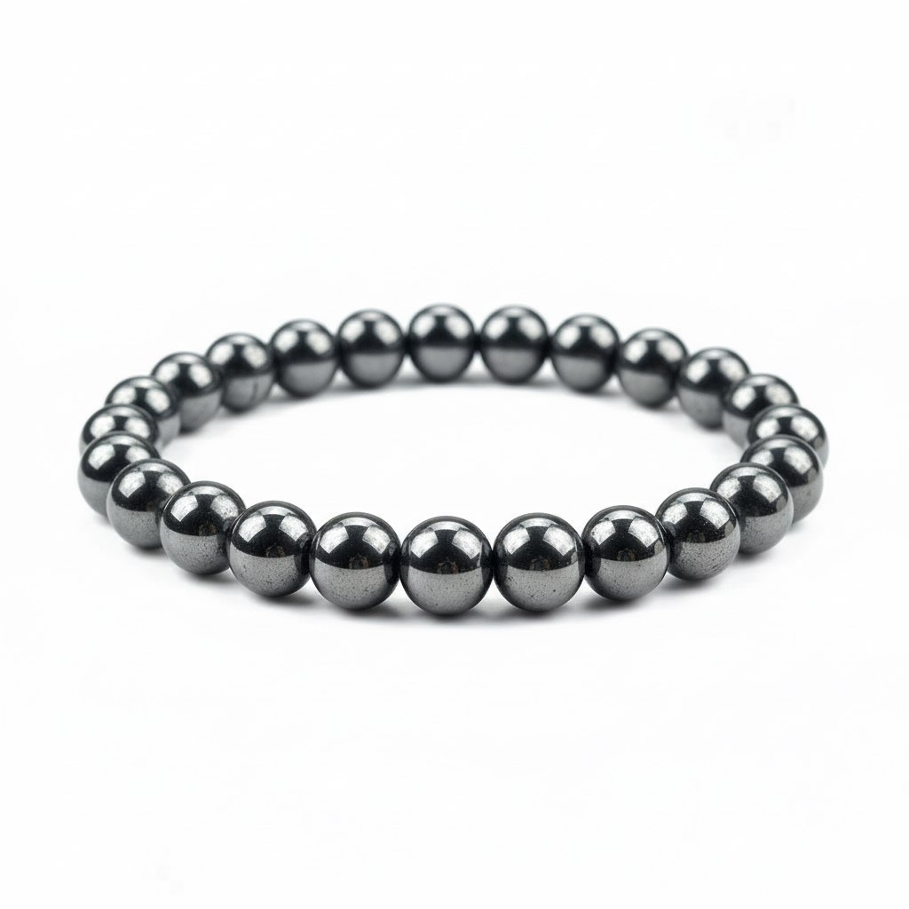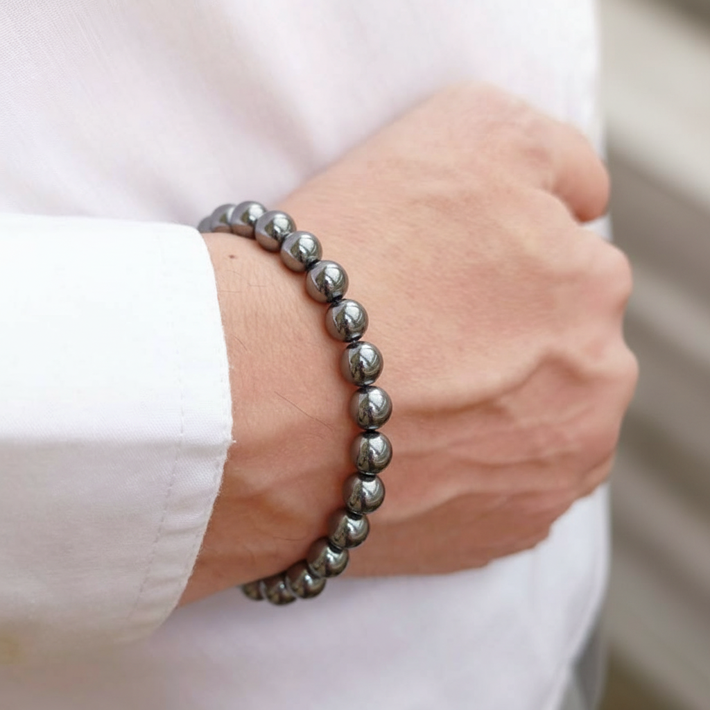 Crafted with polished gun metal stone beads, this bracelet delivers a sleek, modern look with a metallic edge. The smooth, reflective finish adds understated luxury, making it perfect for everyday wear or refined evening styling.