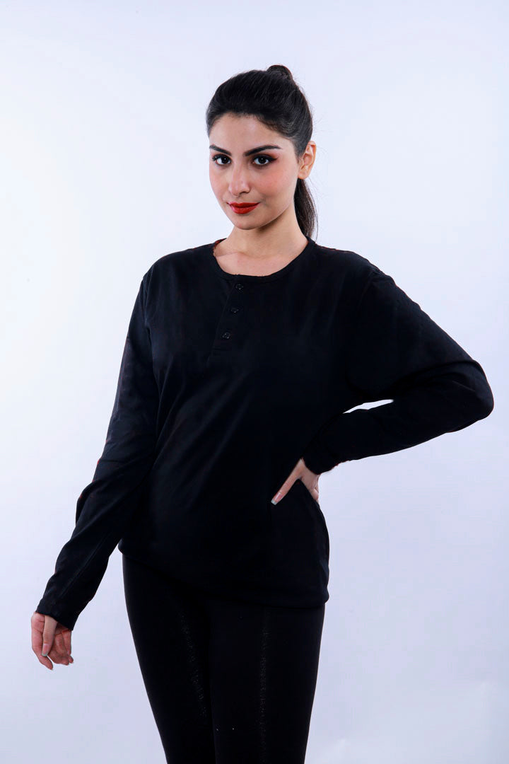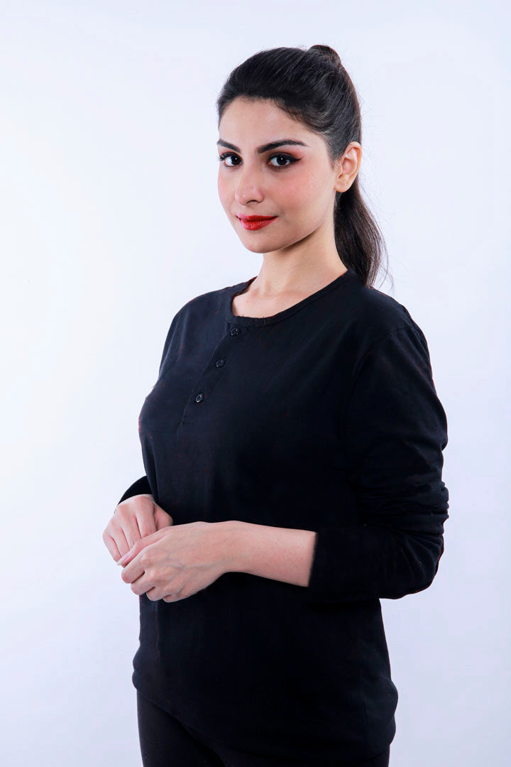 Premium Black Full Sleeve Henley
